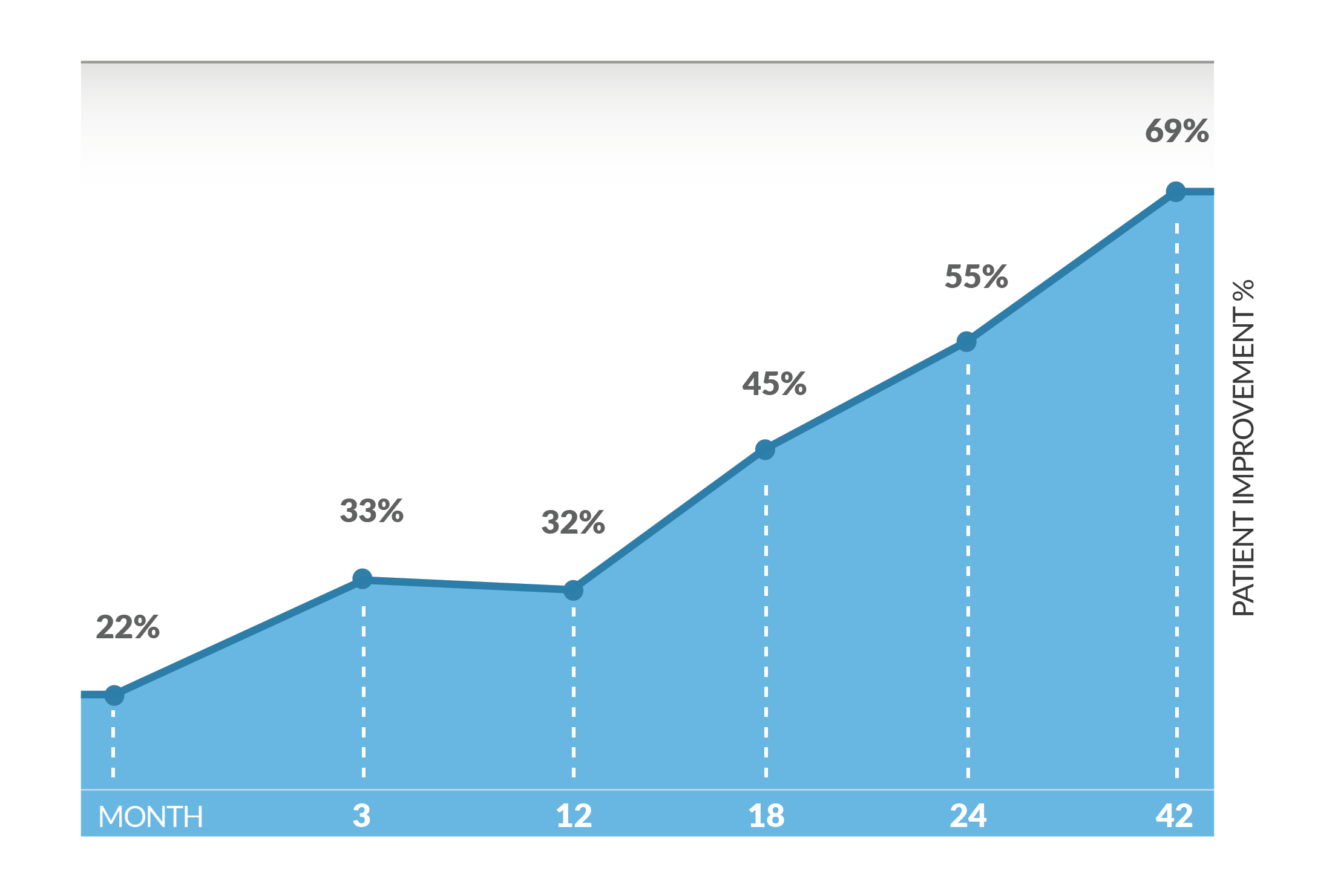 Your cells are then re-injected into problematic joints. (Many other clinics do blind injections – missing the target 20%-40% of the time – but we use advanced image guidance. This helps us hit the intended target, precisely injecting your repair cells exactly where they are needed most.) Our minimally-invasive treatments can help to reduce your pain and restore function. But don’t just take our word for it, Regenexx has been tracking patient outcomes since 2005. Here’s our hip patient improvement data.